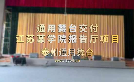 • 通用舞臺承建江蘇某學院報告廳項目,涵蓋舞臺燈光、電動吊桿、阻燃幕布等核心設備的設計與安裝